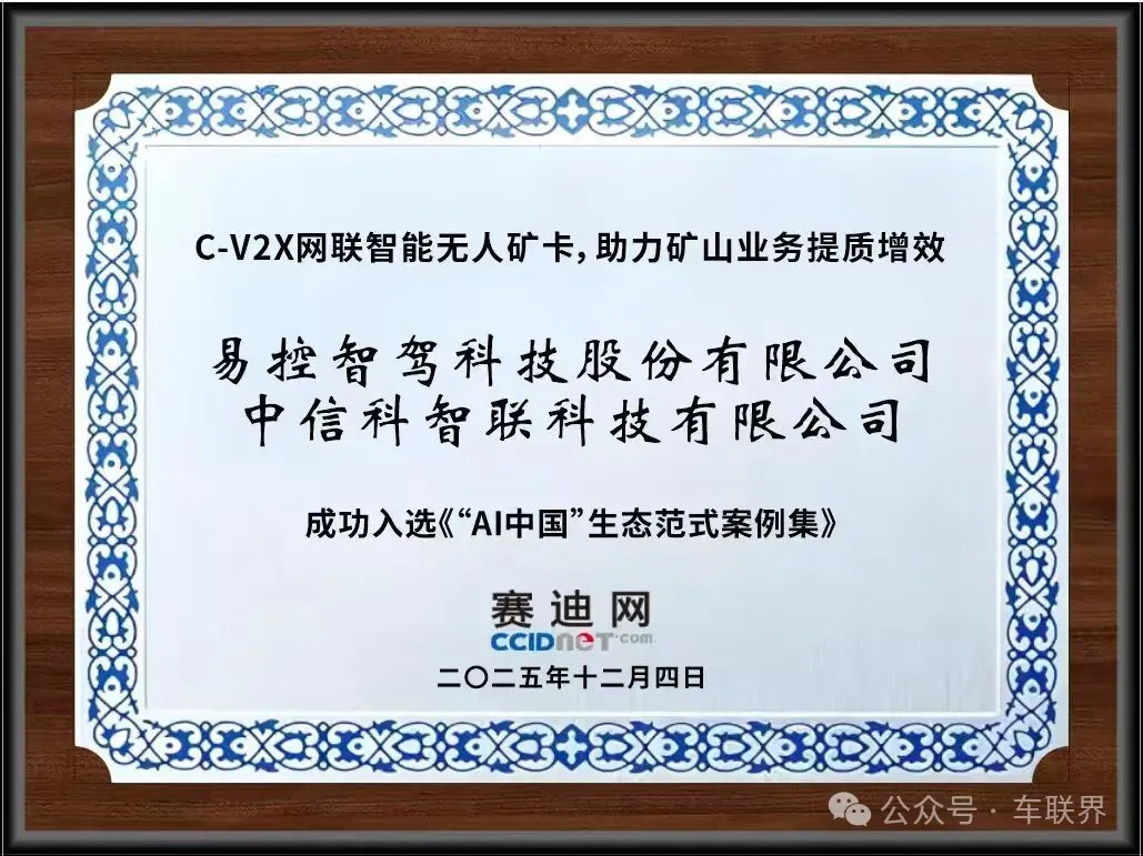 近日,赛迪网、《数字经济》杂志、数字经济观察网等机构联合发布了《“AI中国”生态范式案例征集》。中信科智联与易控智驾以蜂窝车联网(C-V2X )技术为核心,结合人工智能技术,重塑矿山运营范式,成功入编“AI中国”生态范式案例集。