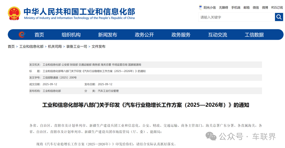 9月12日,工业和信息化部、公安部、财政部、交通运输部、商务部、海关总署、市场监管总局、国家能源局等八部门印发《汽车行业稳增长工作方案(2025—2026年)》。在具体工作举措部分,方案提出要推动智能网联技术产业化应用。
