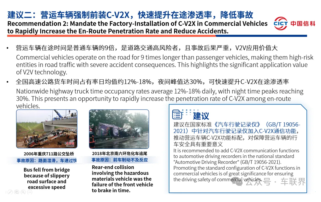 建议二:营运车辆强制前装C-V2X,快速提升在途渗透率,降低事故